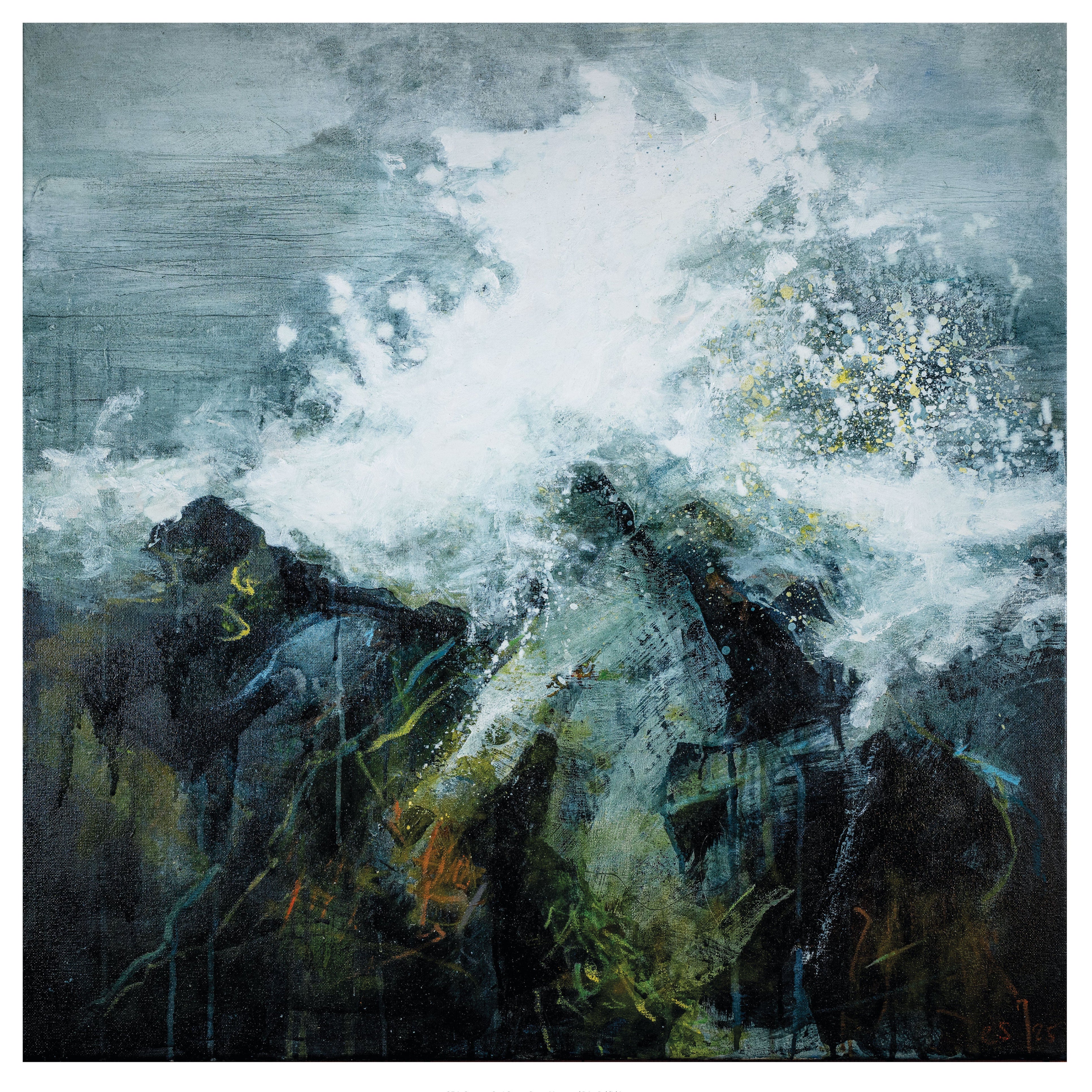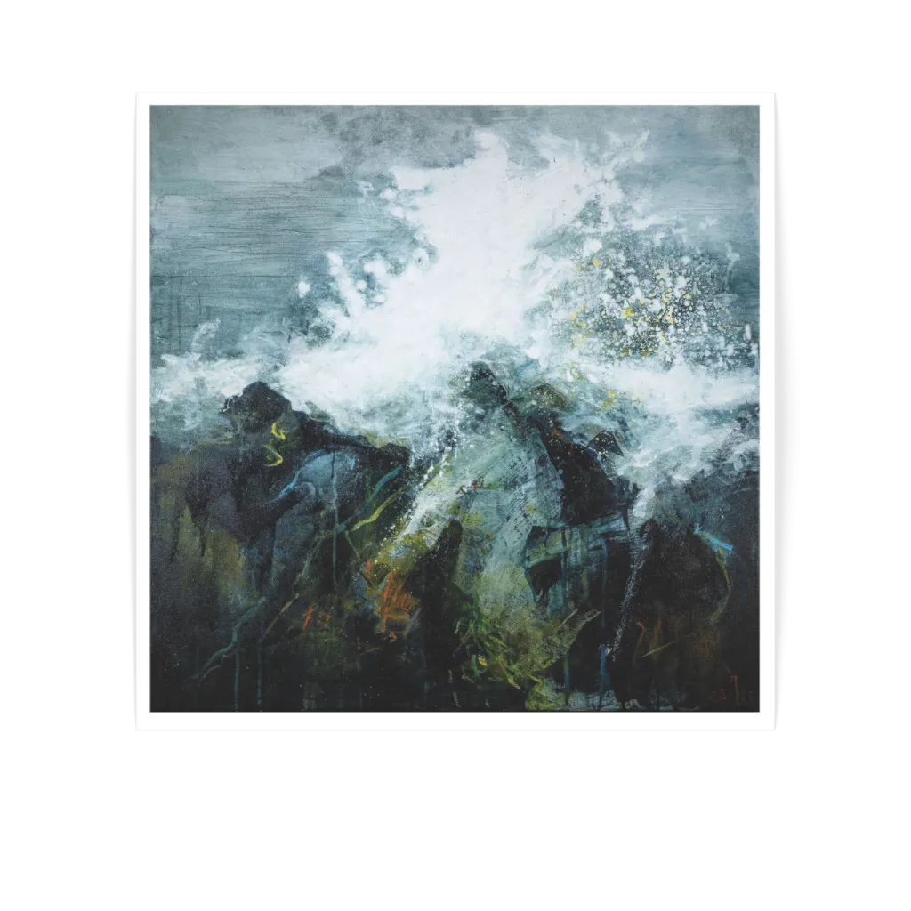 Another from Erin's series depicting the crashing waves and brooding, earthy colours of the Portpatrick coastline. This work captures the raw power of the sea swells meeting rugged Scottish cliffs. Rendered in moody earth tones—charcoal, ochre, and slate—the composition captures the dramatic energy of a coastal storm. This piece exemplifies her masterful handling of movement and atmosphere, translating the untamed character of the Dumfries and Galloway coast into a compelling visual narrative that resonates with those drawn to wild, weathered landscapes. Truly a bold and contemplative centrepiece in any room.