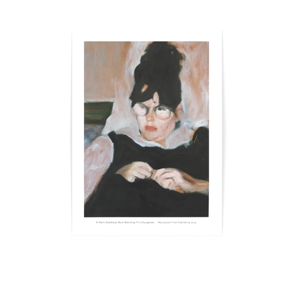A compelling piece from Glasgow painter Mark Readhead, this impressionistic work draws us in to the quiet and intimate space of the domestic setting. A masterful renedering, with a  title that hints at a certain playfullness, this work blends singular talent with its subject to create a truly original example of Scottish portraiture. A captivating print that will add a striking and contemplative addition to any room.