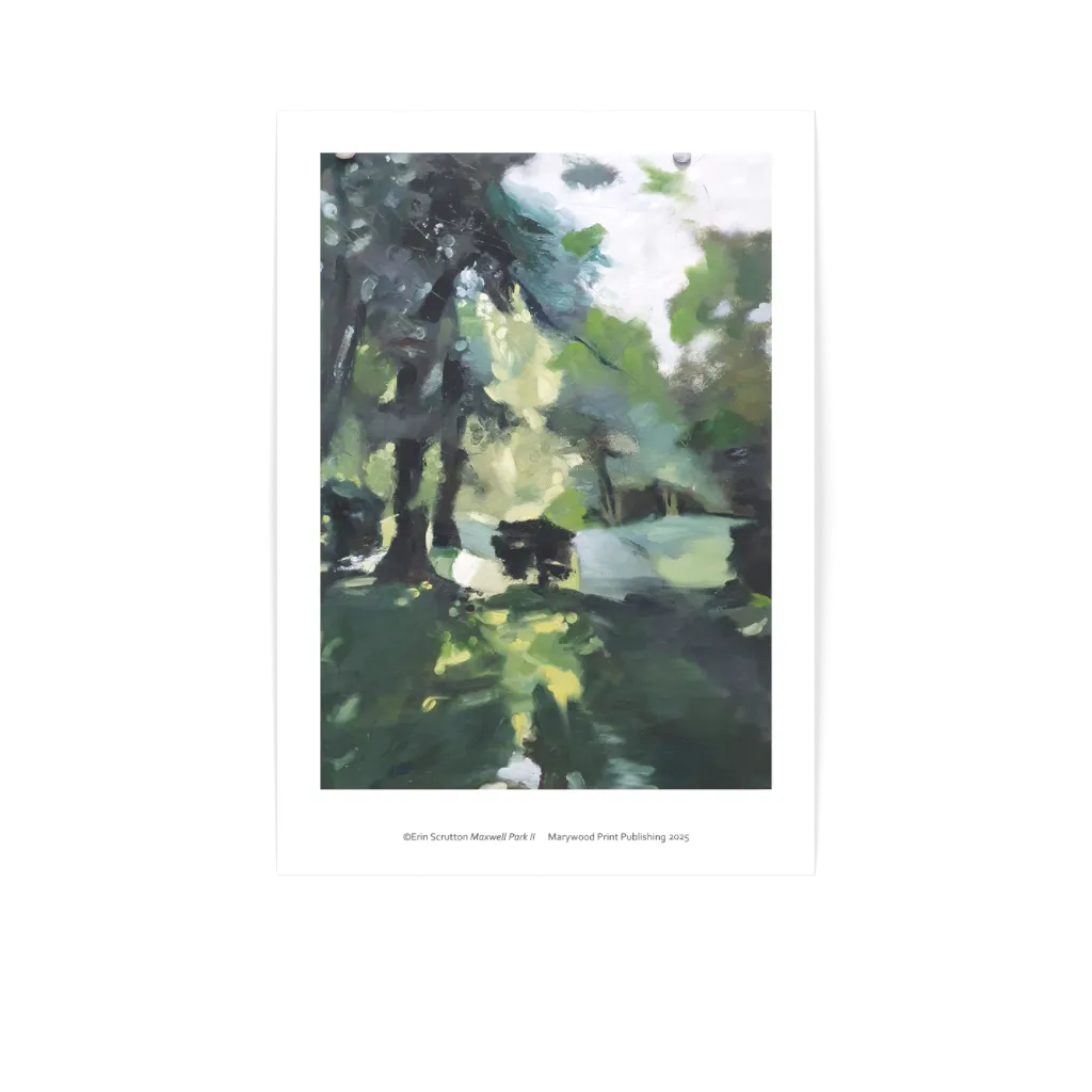 A masterful rendering of Glasgow's Maxwell Park, this work captures the greenery of the southside, bathed in radiant sunlight. Erin's handling of light and form captures tension between movement and stillness, inviting viewers to experience the park's restorative qualities.
